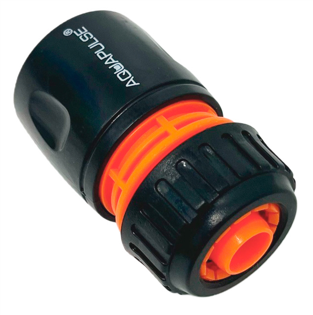 Коннектор 1/2" – 5/8" AP 1002Коннектор для шлангов диаметром 1/2" - 5/8" (12.5-15 мм.), выполнен в виде классической модели, из высококачественного и ударопрочного пластика ABS. Данная модель легко снимается, если его потянуть на себя. Новая форма зажимной гайки позволяет прочно зафиксировать коннектор со шлангом. Зубья цанги специальной формы обеспечивают надёжное закрепление тонкостенных шлангов. Может быть установлен в разные участки систем орошения.