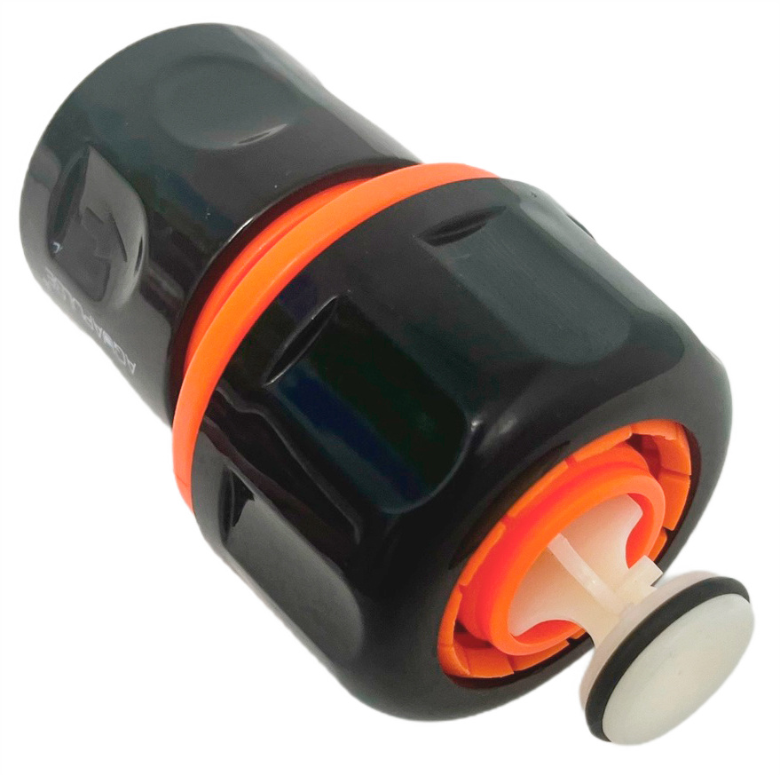 Коннектор 1" со стопом AP 1205Коннектор с автостопом для шлангов диаметром 1" (25 мм.), выполнен в виде классической модели, из высококачественного и ударопрочного пластика ABS. Предназначен для увеличения объёма подаваемой воды в системы орошения, может использоваться с насосами. Данная модель легко снимается, если его потянуть на себя. Новая форма зажимной гайки позволяет прочно зафиксировать коннектор со шлангом. Может быть установлен на определённых участках систем орошения как правило устанавливается на выходной части шланга. Особенностью коннектора с автостопом является автоматическая остановка потока воды при отключении элемента полива (насадка, ороситель и т.д.)