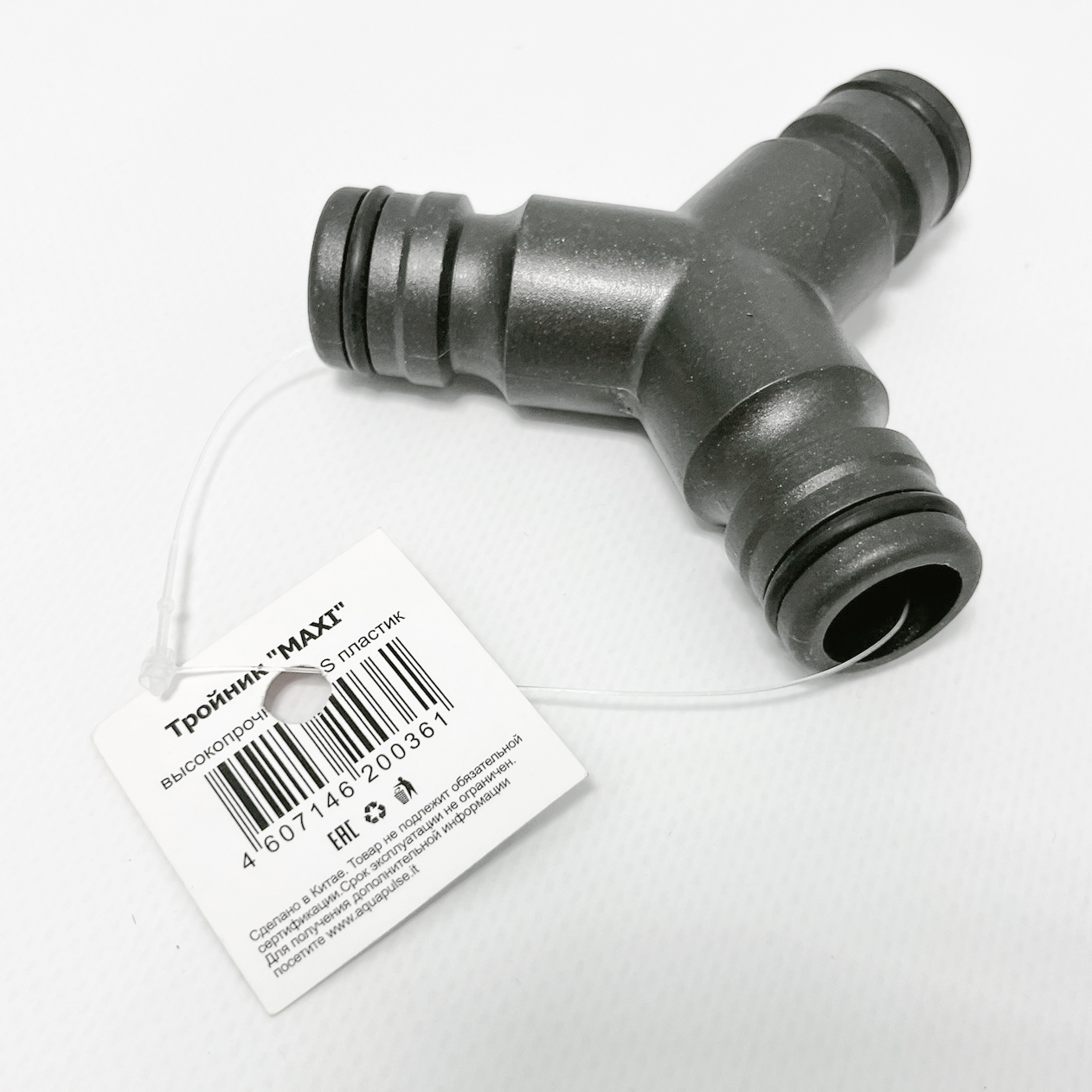 Тройник "MAXI" AP 1118Тройник с увеличенным проходным диаметром, для более высокой пропускной способности, выполнен из высококачественного и ударопрочного пластика ABS. Данная модель предназначена для разветвления системы полива, если вы используете только один источник подачи воды, также служит для перехода со шланга диаметром 1" (25 мм.) на 3/4" (19 мм.). Адаптер соединяется между коннекторами по системе быстрого соединения, непосредственное подключение к шлангу возможно при помощи хомутов.