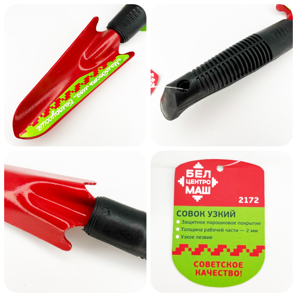Совок посадочный узкий 2172 ЦИУзкий садовый совок Центроинструмент БЦМ 2172 используется при выполнении различных садовых работ. Узкое лезвие позволяет выкапывать аккуратные лунки. Порошковое покрытие защищает рабочую часть от коррозийных процессов. Однокомпонентная пластиковая рукоятка удобно лежит в руке, что гарантирует комфортную работу. Толщина рабочей части - 2 мм.