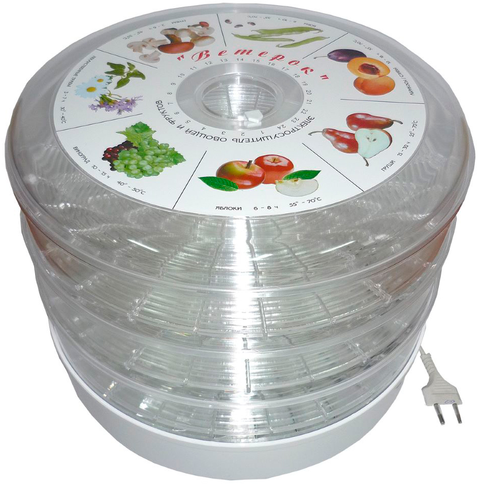 Сушилка Ветерок 3 сита прозрачная для овощей и фруктов электр