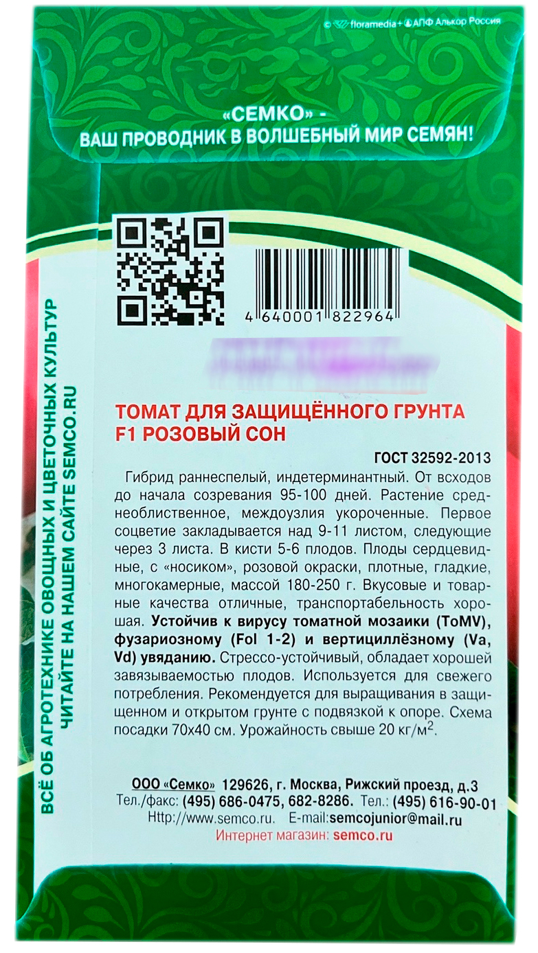 Томат Розовый Сон F1Ранний, индетерминантный гибрид для защищенного грунта. Растение среднеоблиственное, междоузлия укороченные. От всходов до начала созревания 95–100 дне0й. Первое соцветие закладывается над 9–11 листом, следующие через 3 листа. В кисти завязывается 5–6 плодов. Плоды многокамерные, розовой окраски, округлые, с заостренной вершиной, массой 180–250 граммов, плотные, гладкие. Вкусовые и товарные качества отличные, транспортабельность хорошая. Гибрид томата устойчив к вирусу томатной мозаики (ToMV). Стрессоустойчивый, обладает хорошей завязываемостью плодов. Томат Розовый Сон F1 рекомендуется для выращивания в защищенном грунте и для открытого грунта с подвязкой к опоре. Плоды используются для свежего потребления. Густота посадки 2,5–2,8 раст./м2. Схема посадки 70х40 см. Урожайность свыше 20 кг/м2.