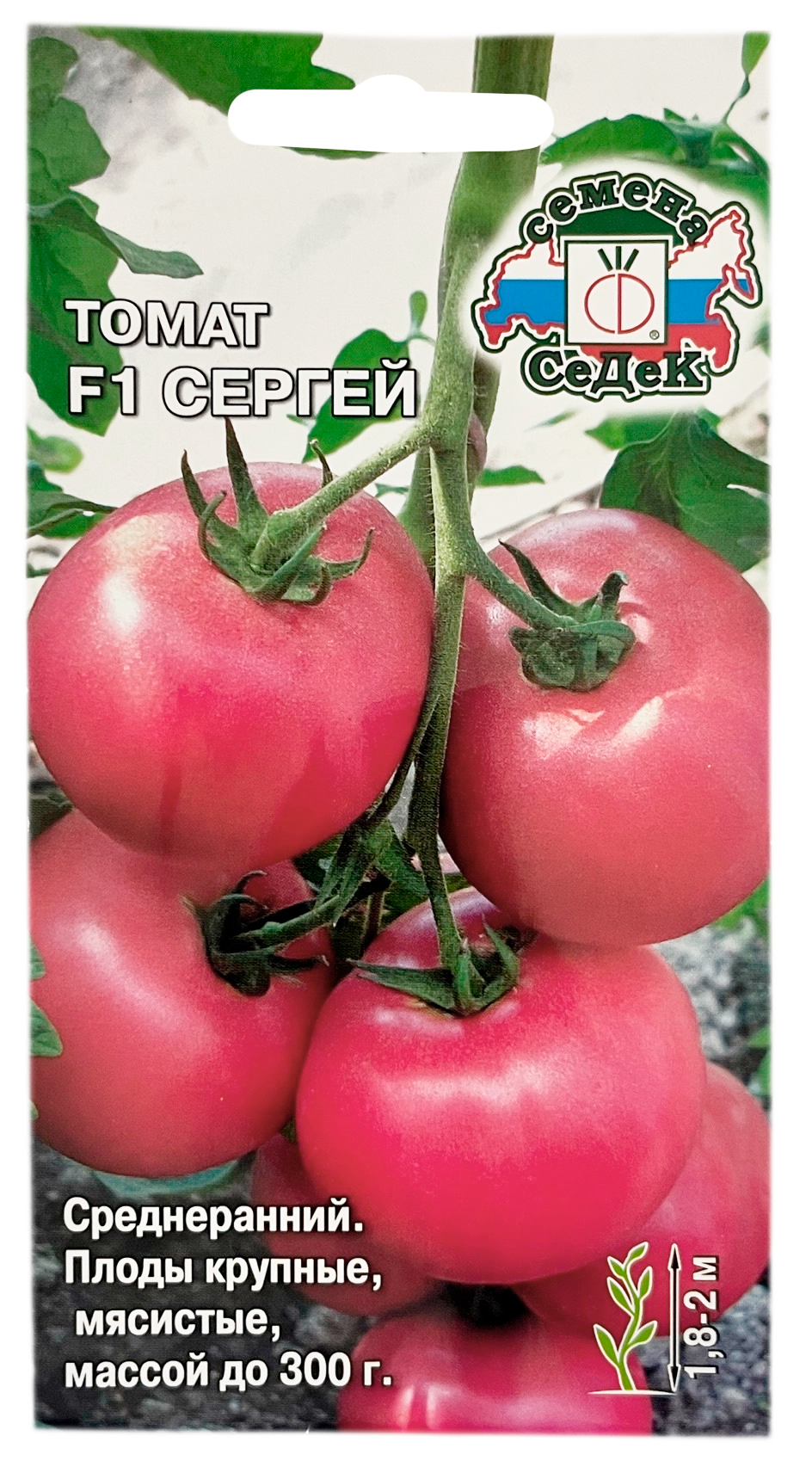Томат F1 СЕРГЕЙ СеДеКСреднеранний (105-110 дней) гибрид для защищенного грунта. Растение индетерминантное, высотой 1,8-2 м, среднеоблиственное. Требует подвязки и пасынкования. В кисти формируется 5-6 плодов. Плоды ярко-розовые, плоскоокруглые, гладкие, массой 300 г, мясистые, сочные, очень вкусные. Ценность гибрида: устойчивость к фузариозу, вертициллезу, вирусу табачной мозаики, высокая урожайность и отличные товарные качества плодов. Рекомендуется для употребления в свежем виде, приготовления салатов и соков, и всех видов переработки.