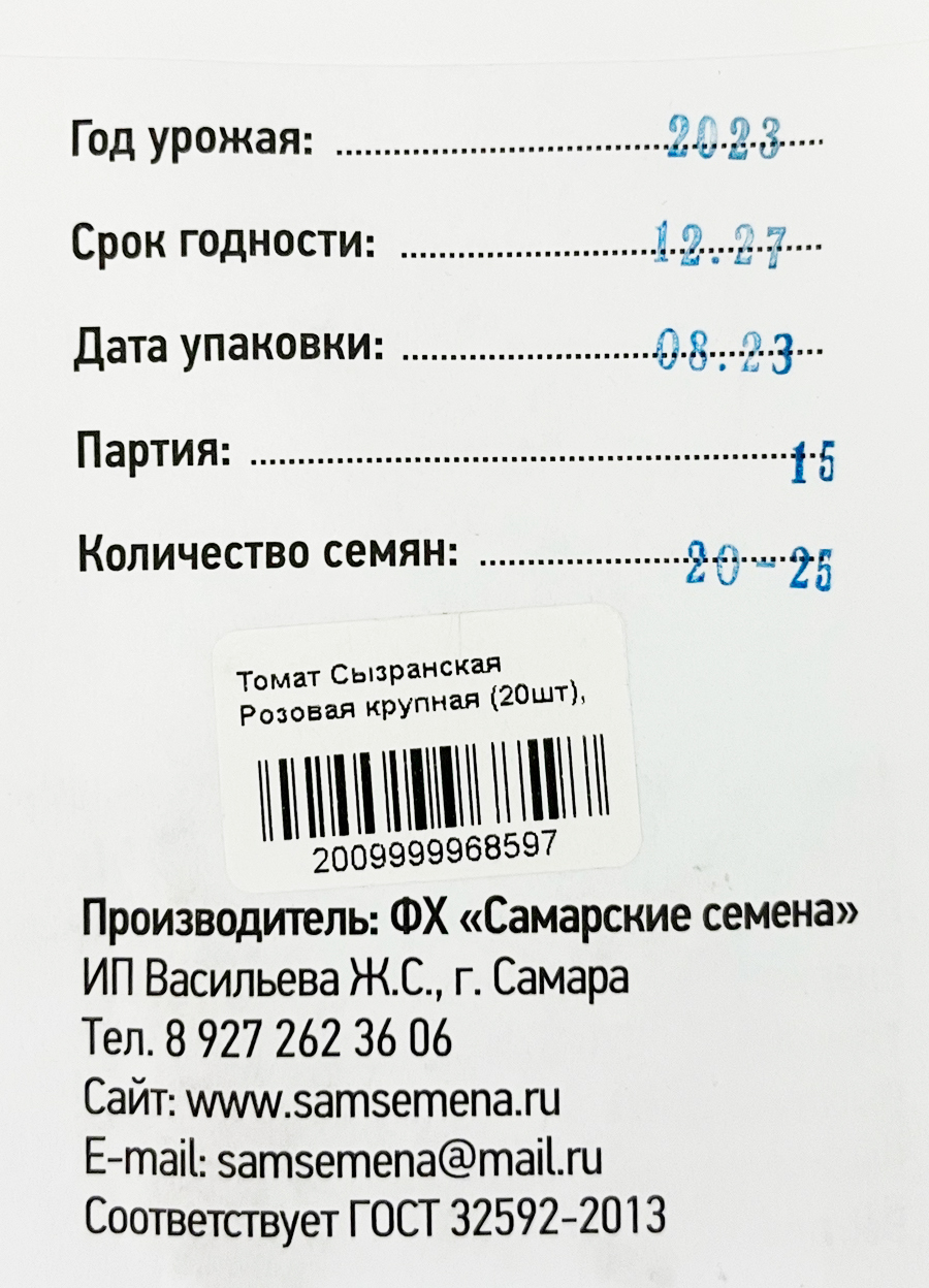 Томат Сызранская Розовая крупная (20шт) семена
