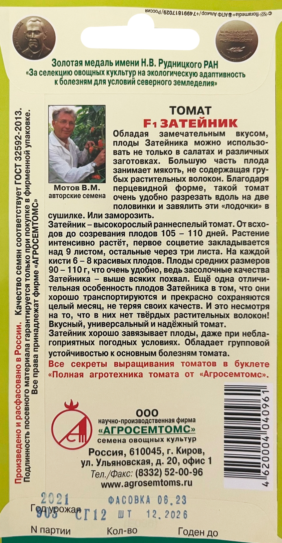 Затейник – высокорослый раннеспелый томат. От всходов до созревания плодов 105 – 110 дней. Растение интенсивно растёт, первое соцветие закладывается над 9 листом, остальные через три листа. На каждой кисти 6 – 8 красивых плодов. Плоды средних размеров 90 – 110 г, что очень удобно, ведь засолочные качества Затейника – выше всяких похвал. Ещё одна отличительная особенность плодов Затейника в том, что они хорошо транспортируются и прекрасно сохраняются целый месяц, не теряя своих качеств. И это несмотря на то, что в них нет твёрдых растительных волокон! Вкусный, универсальный и надёжный томат.