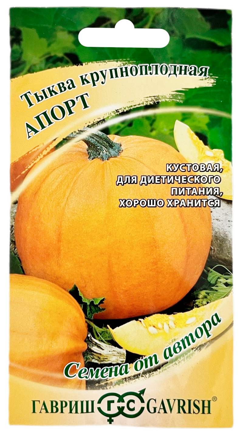 Тыква крупноплодная АПОРТ ГАВРИШРаннеспелый (90-100 дня от полных всходов до уборки) сорт. Растение кустовое, компактное, главная плеть короткая. Плод шаровидный, овальный, массой 4-7 кг. Окраска фона оранжевая, без рисунка. Кора тонкая, кожистая. Мякоть желтая, хрустящая, средней толщины и сладости, сочная. Вкусовые качества хорошие. Выращивается как рассадным способом, так и прямым посевом в грунт. Посев на рассаду в апреле, высадка в грунт в мае – июне. Посев непосредственно в грунт в конце мая – июне. Хорошо отзывается на внесение органических удобрений. Схема посадки 100x100 см. Урожайность 13,4 кг/м2.