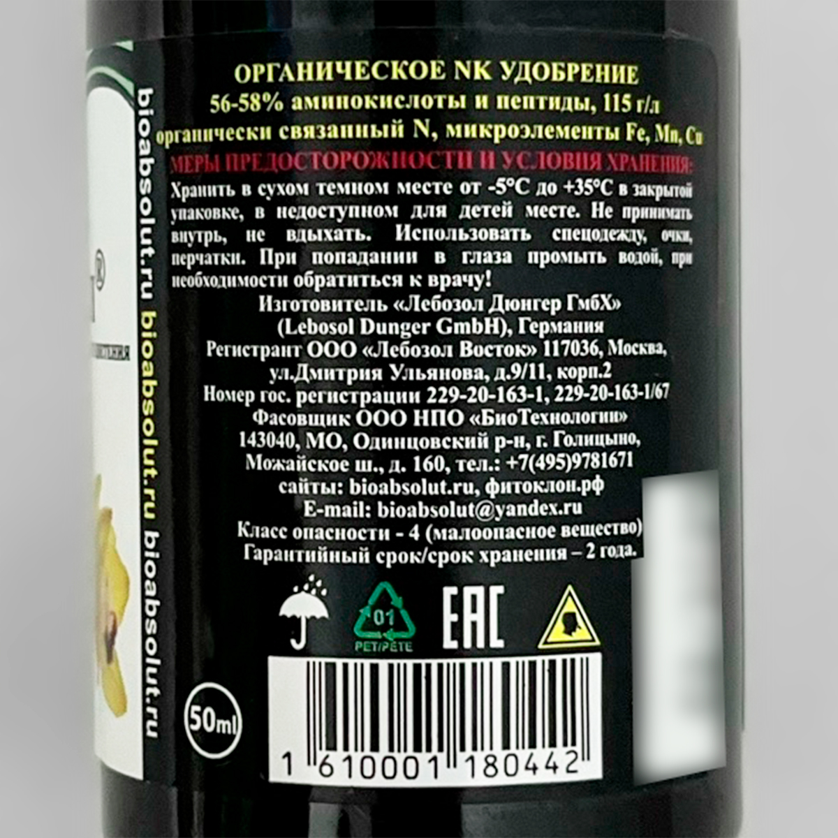 СОСТАВ: 56-58% аминокислоты и пептиды, 115 г/л органически связанный азот N, микроэлементы Fe, Mn, Cu.
