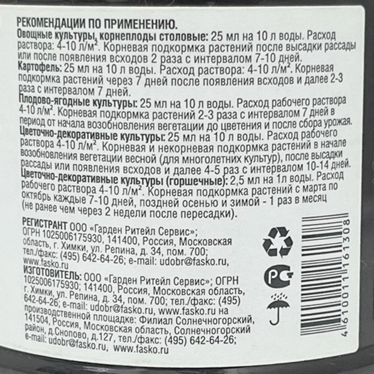Органическое удобрение для подкормок овощных, плодовых, ягодных и декоративно-цветочных культур. Обеспечивает равномерное распределение питательных веществ в почве, их быстрый доступ к растениям.