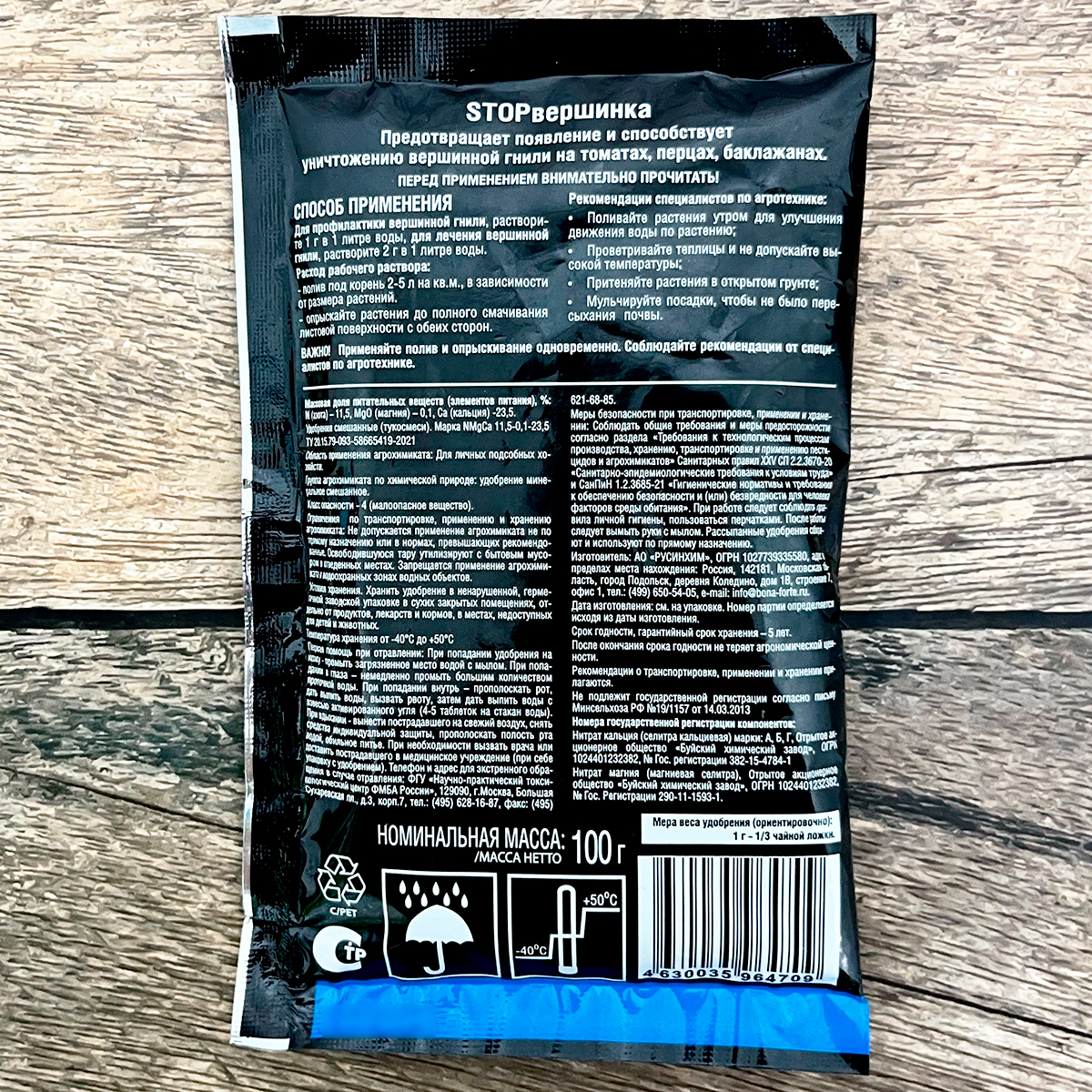 Содержит комплекс веществ, необходимых для уничтожения вершинной гнили.