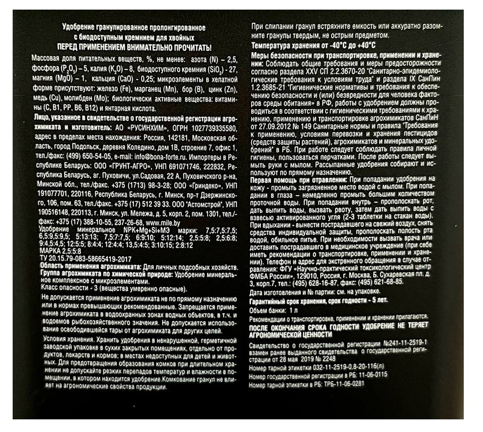NPK, биодоступный кремний, микроэлементы в хелатной форме, магний, витамины, янтарная кислота.
