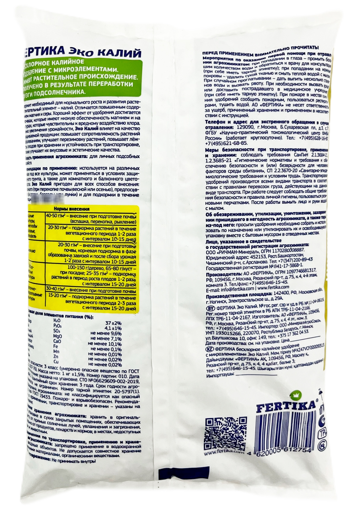 ЭКО КАЛИЙ 1 кг ФЕРТИКА- Содержит необходимый для нормального роста и развития растений питательный элемент – калий. Калий содержится в форме карбоната калия;
