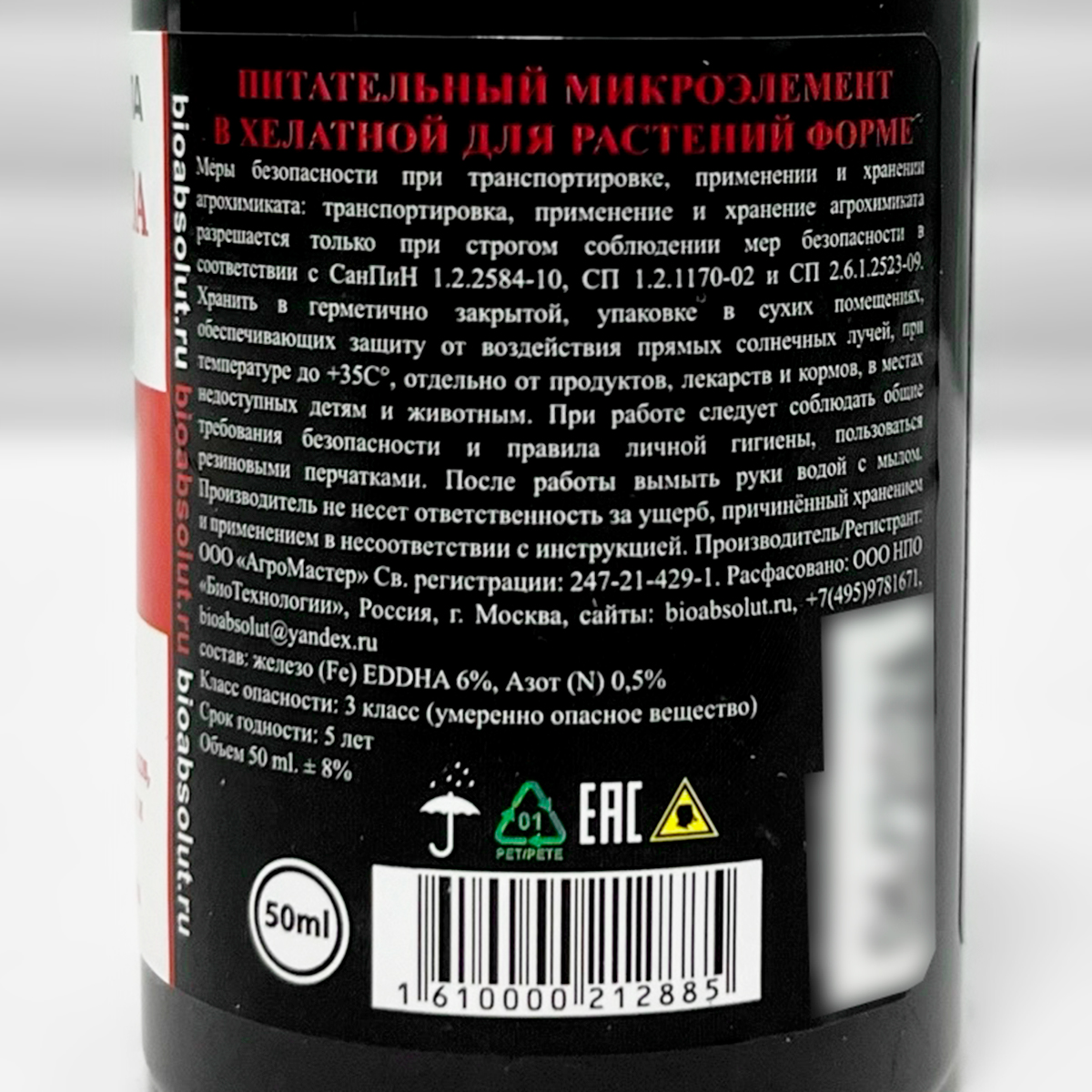 Cостав: железо (Fe) EDDHA 6%, Азот (N) 0,5%.