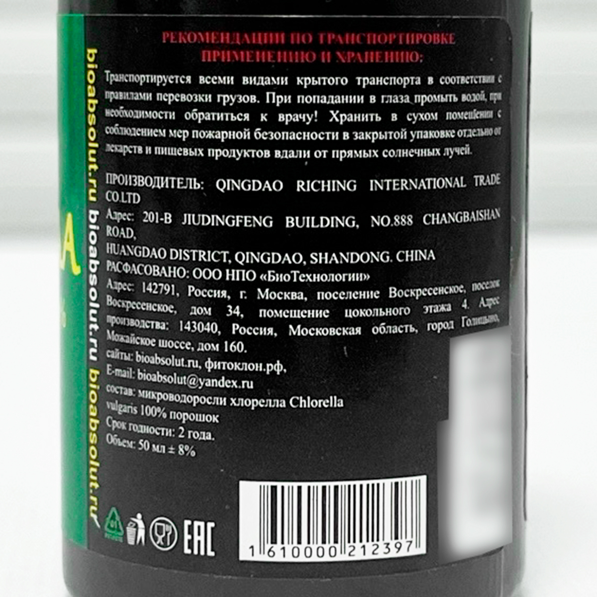 Хлорелла для растений "БИОАБСОЛЮТ" удобрение - биостимулятор, реаниматор, порошок 50 мл.Состав: Chlorella vulgaris 100%.