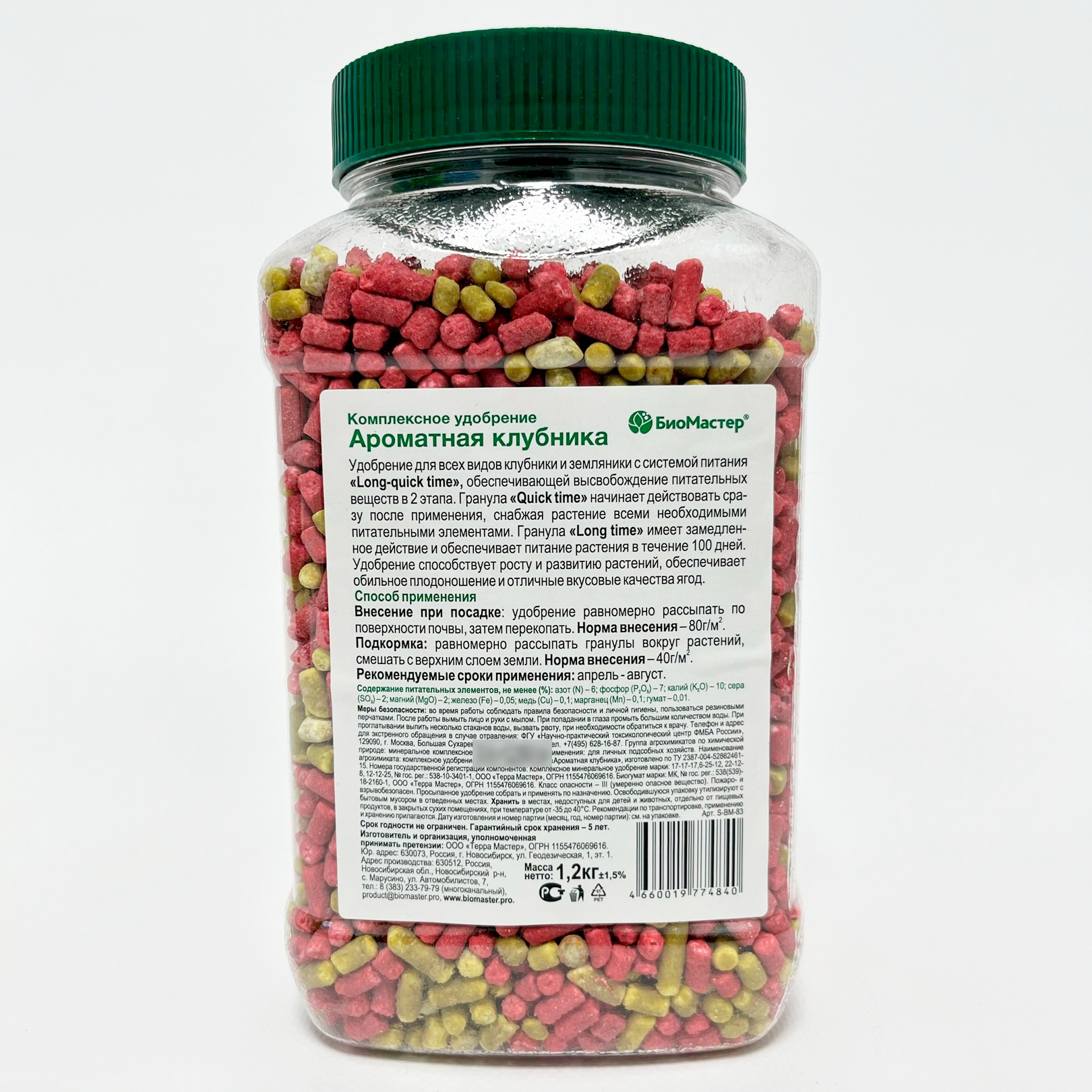 Ароматная клубника БиоМастер 1,2кгУдобрение для земляники и клубники с системой питания «Long-quick» обеспечивает высвобождение питательных веществ в 2 этапа. Гранула «Quick» начинает действовать сразу снабжая растения всеми необходимыми питательными элементами. Гранула «Long» медленно высвобождают питательные вещества в течение 100 дней. Удобрение обеспечивает рост и развитие сильных, здоровых растений, обильное плодоношение и формирование вкусных ягод.