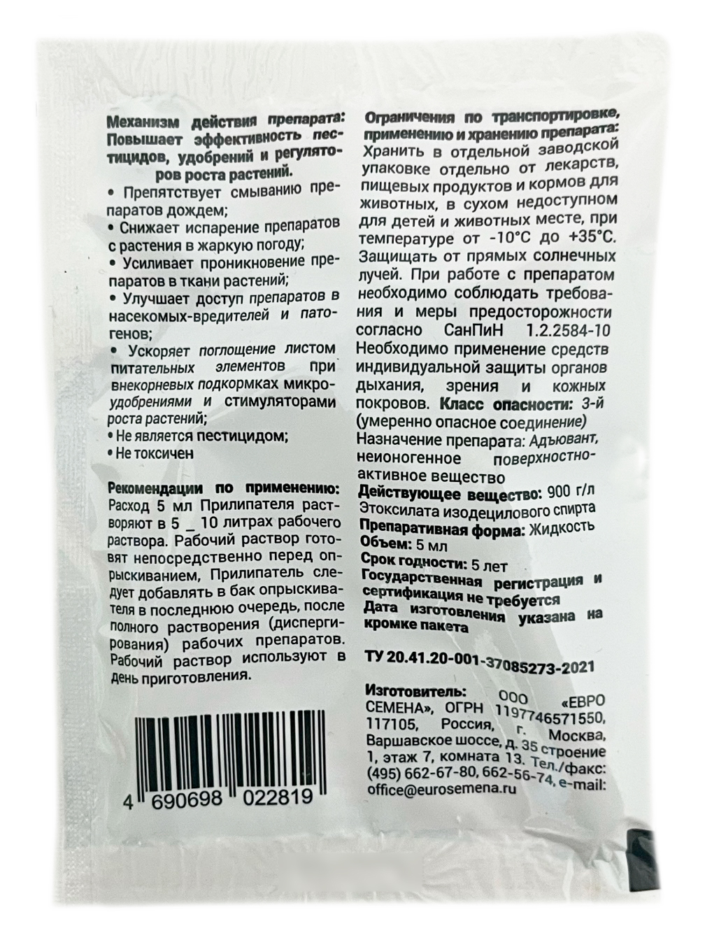 Прилипатель для сада 5млПовышает эффективность средств защиты растений, удобрений и регуляторов роста. Гарантированный результат!
