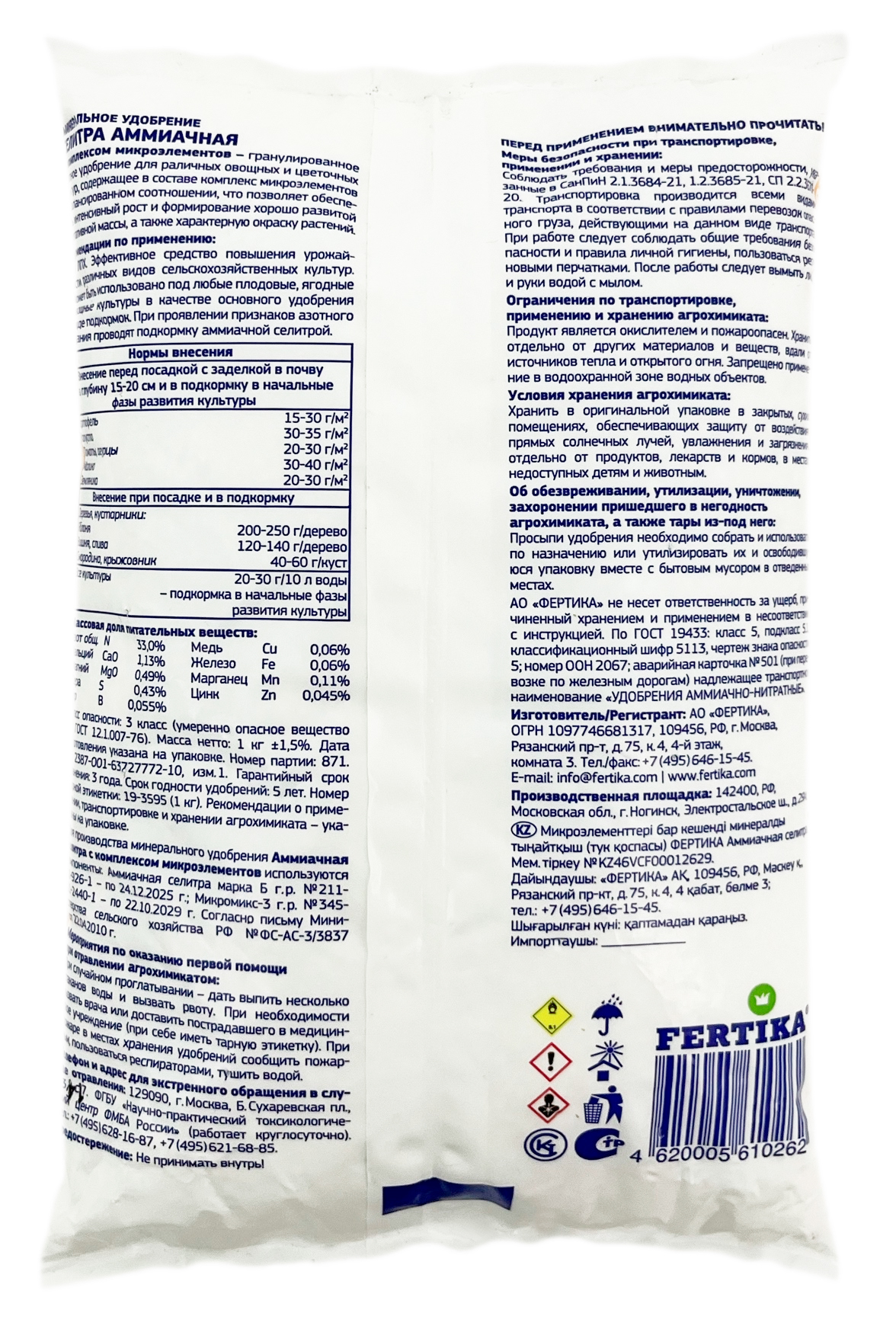 АММИАЧНАЯ СЕЛИТРА 1кг Фертика- Универсальное азотное удобрение;