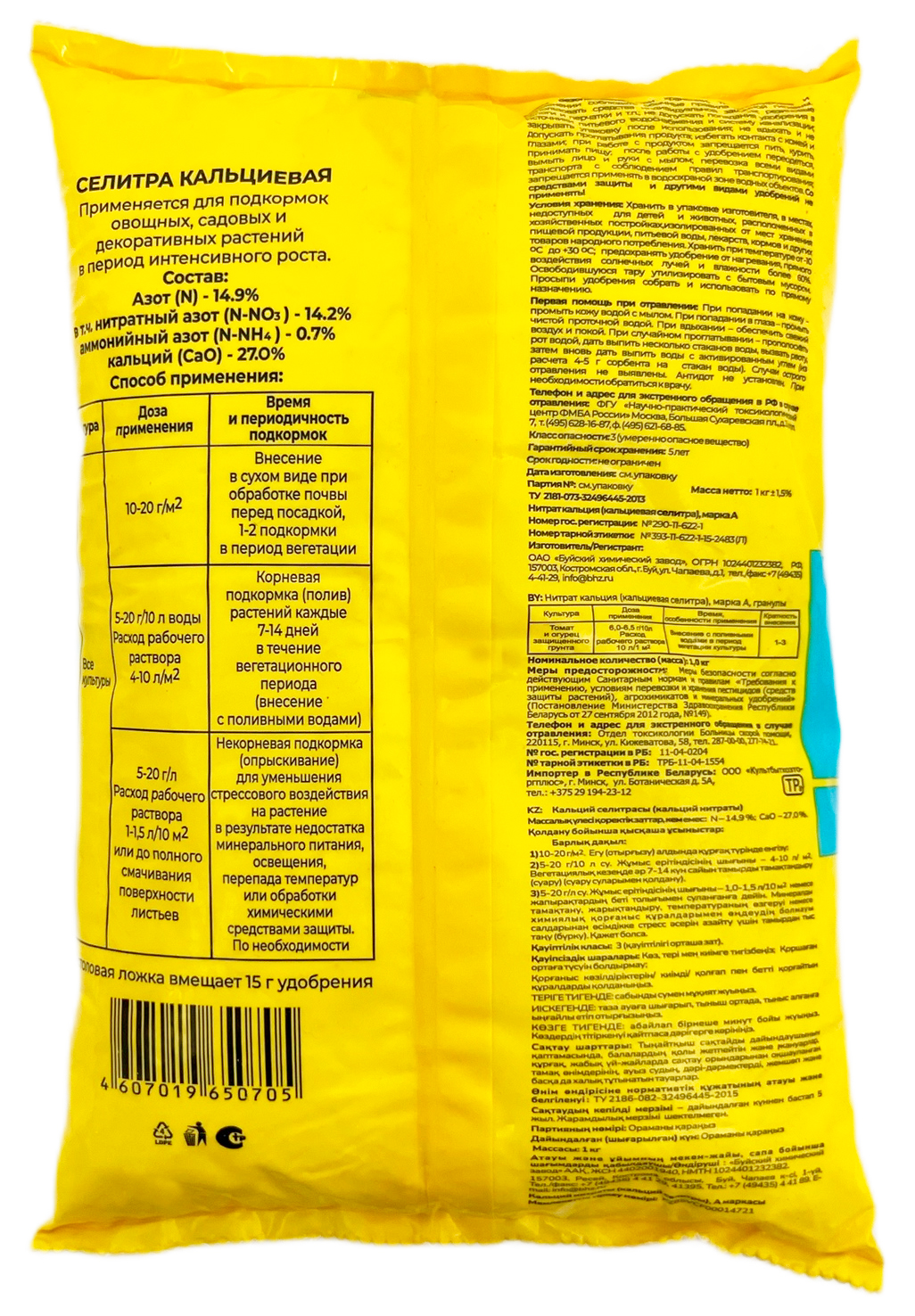 Азотно-кальциевое водорастворимое удобрение для подкормок овощных, плодовых, цветочных, декоративных и других культур.