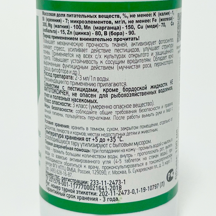 Силиплант Универсальный 100млСодержит активный кремний (не менее 7% Si), калий (1%) и микроэлементы в хелатной форме (г/л) : железо (Fe) - 0,30, магний (Mg) - 0,10, медь (Сu) - 0,70; цинк (Zn) - 0,08; марганец (Мn) - 0,30; молибден (Мо) - 0,06; кобальт (Со) - 0,015, бор (В) - 0,090;