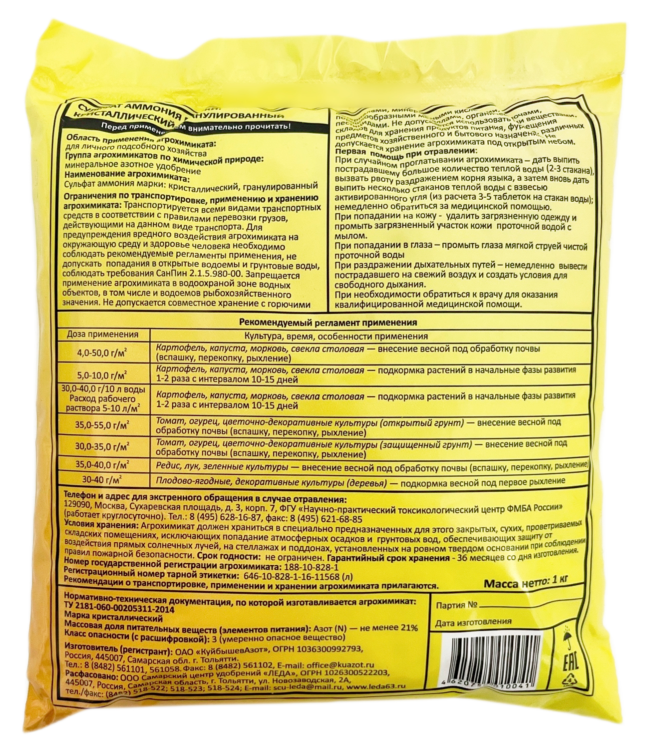 Сульфат аммония Su 1кг ЛедаМинеральное азотное удобрение. Сульфат амония, кристаллический, гранулированный.