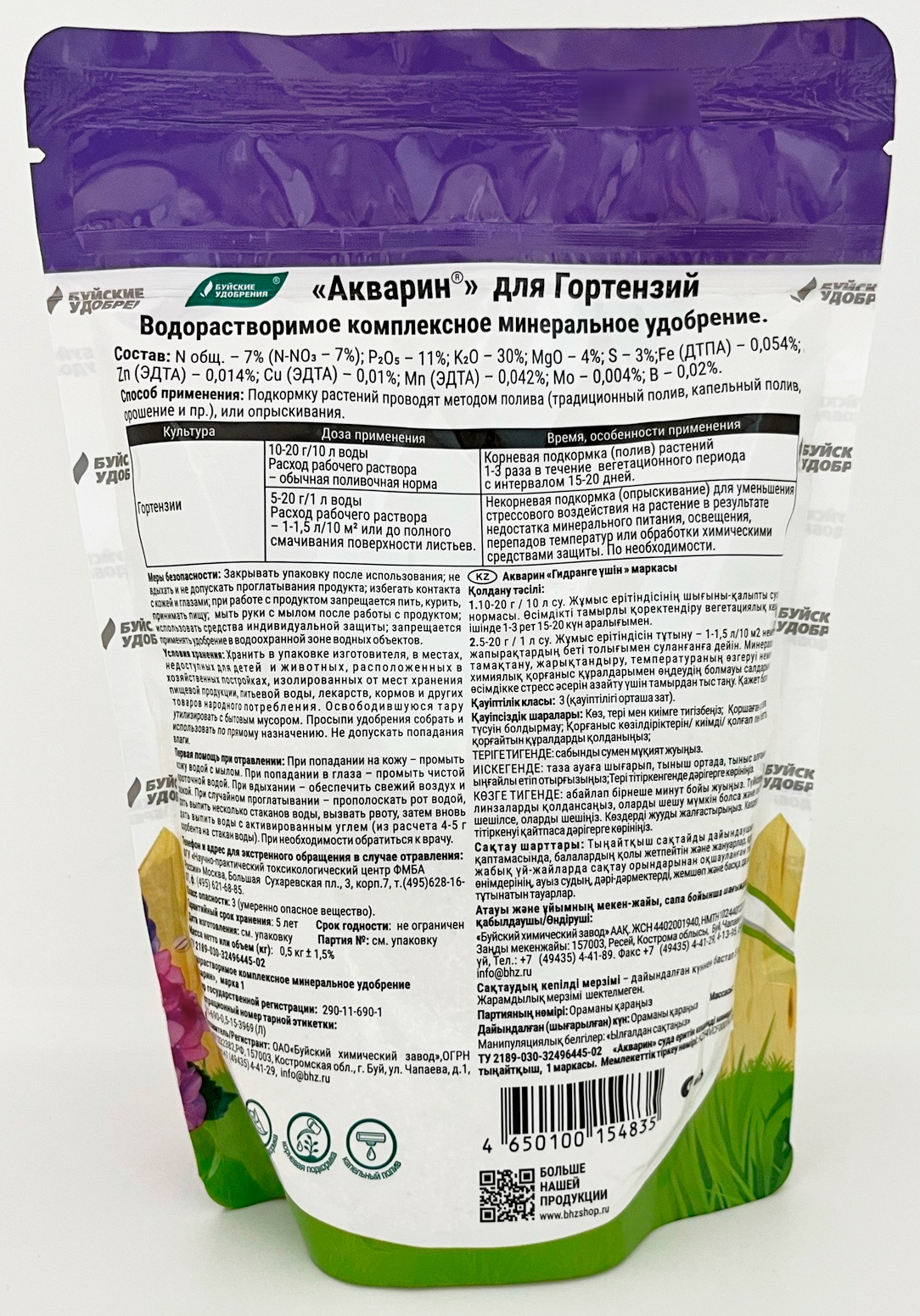 Удобрение Акварин для Гортензий 500г дой-пак Буйский Химзавод