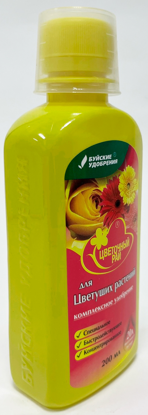 Жидкое комплексное удобрение "Цветочный рай" для цветущих растенийСбалансированный комплекс высокоэффективных, легкодоступных для растений микроэлементов – Fe, Mn, Zn, Cu, в виде сложных органических солей – хелатов, а также B, Mo. За счет этих элементов способствует здоровому росту и развитию растений. Стимулирует развитие побегов, сочной зеленой листвы, обильного и длительного цветения. Устраняет видимые проявления дефицита элементов питания, предотвращает развитие болезней, вызванных недостатком тех или иных микроэлементов.