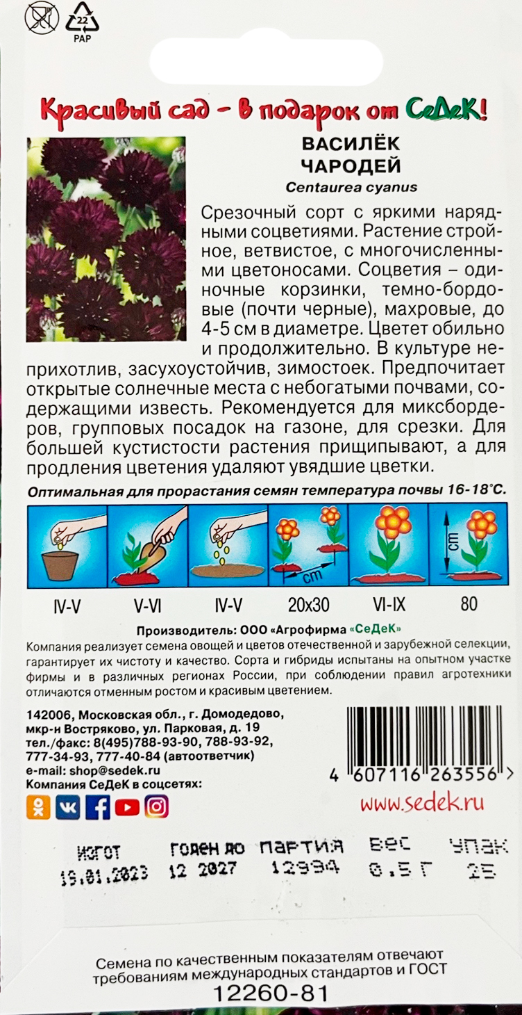 Василек Чародей черный семена